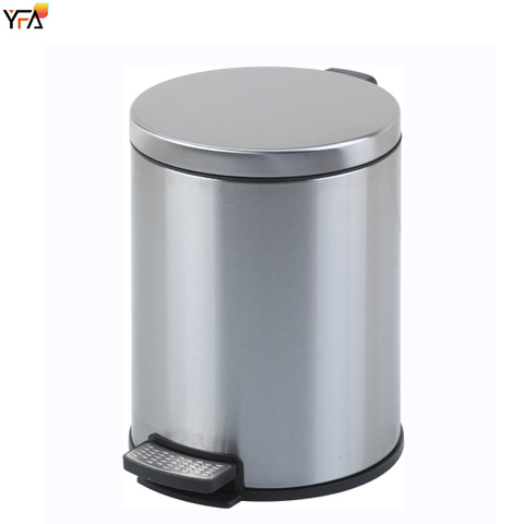 Cubo de basura de Pedal de habitación redonda, cubos de basura de Pedal de acero inoxidable cepillado, cubos de basura para Hotel en casa