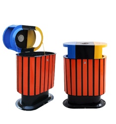 All'aperto classificato bidone della spazzatura in legno con coperchio esterno bidone della spazzatura in metallo per il pubblico
