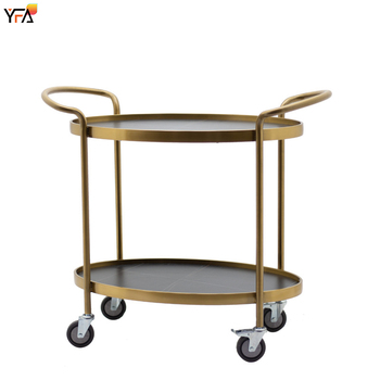 高級2層ゴールドメタルと人工石バーカートトロリーホテルレストランローリングワインフードサービングカート