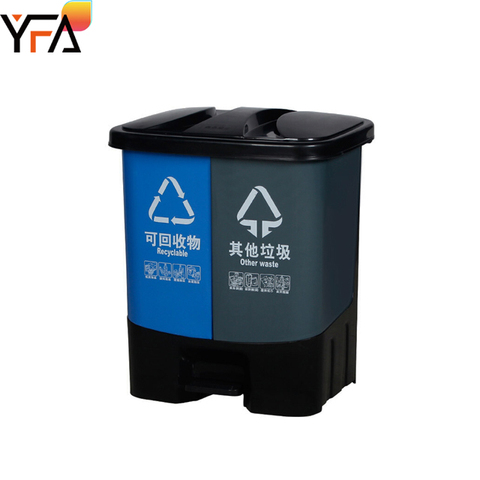 Sıcak satış geri dönüşüm plastik çift çöp kutusu kapaklı çöp tenekesi atık pedallı çöp kutusu 20L çöp kutusu mutfak hastane için