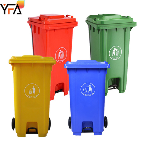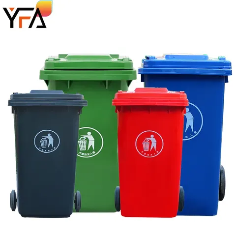 Tekerlekler ile 120L plastik çöp tenekesi açık çöp kutuları sokak çöp tenekesi çöp kutusu