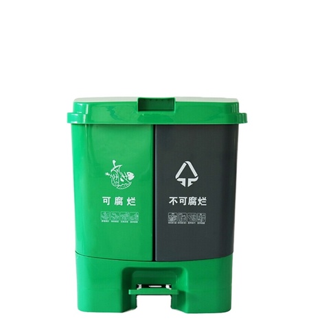 Kalite kalınlaştırılmış plastik kuru ve ıslak sınıflandırma çöp kutuları, kapaklı ayak ile çalışan plastik çöp kutuları, 2-in-1 geri dönüşüm kutuları